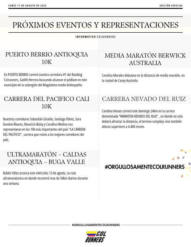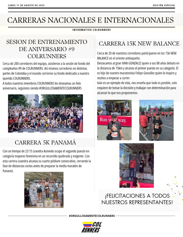 Periódico Colrunners 11 de Agostoadminagosto 11, 2025Blog, Periódico Colrunners Un resumen de lo que ha sucedido en el equipo Colrunners esta última semana.