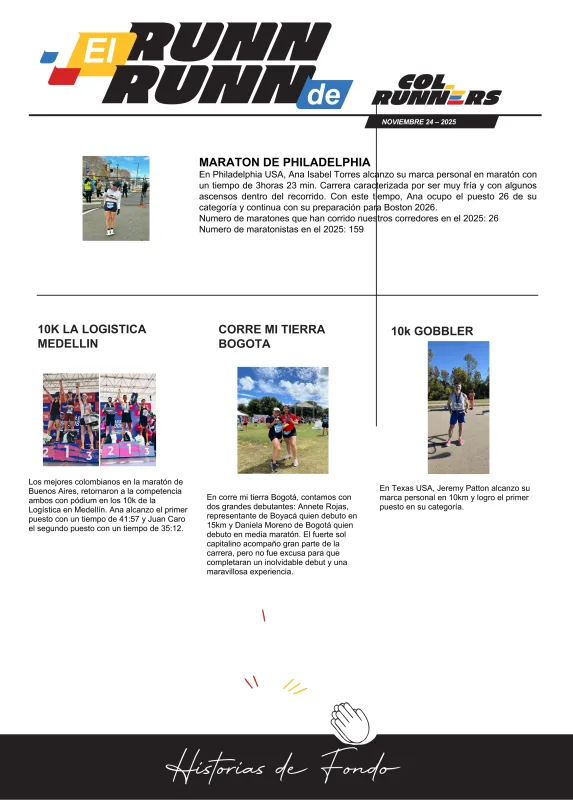 Periódico Colrunners 24 Noviembreadminnoviembre 25, 2025Blog, Periódico Colrunners Un resumen de lo que ha sucedido en el equipo Colrunners esta última semana.